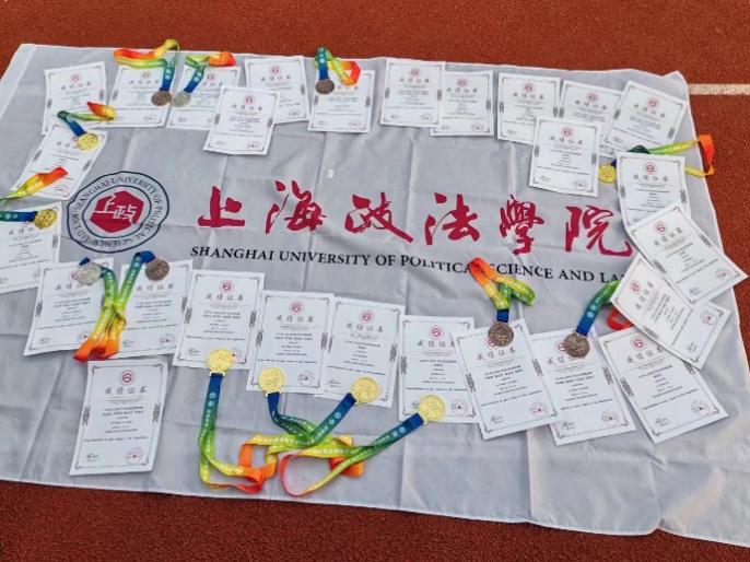 我校代表队在宋剑英、费杰、孔凡立、岳明四位老师的带领下,参加甲组32个项目的竞赛,通过激烈的角逐,最终超越复旦、交大、上海理工等老牌田径强队,获得甲组团体总分冠军,甲组男子团体第一、女子团体第三,甲组奖牌榜第一的历史性好成绩,为校争光、勇夺荣誉。本次比赛中,我校运动员共取得四金、一银、两铜,打破了四项校记录,在个人单项与团体项目中均取得佳绩,展现了上政学子青春闪耀、积极进取的风采。