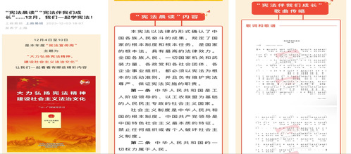 为全面贯彻落实习近平新时代中国特色社会主义思想和党的二十大精神,学习贯彻习近平法治思想,引导学生将宪法精神、法治精神内化为法治理念和思想,外化为行为规范,使尊法学法守法用法蔚然成风,我校学生工作部以“大力弘扬宪法精神,建设社会主义法治文化”为主题,在宪法宣传周(12月4日至12月10日)期间开展了形式多样、内容丰富的“学宪法 讲宪法”主题系列活动。