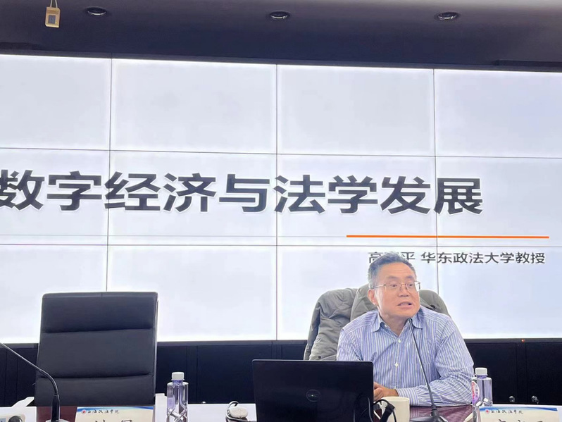 11月15日晚,新利18官方客服“名家讲坛”第153讲在求实楼513会议室如期举行。中国政法大学法学博士,华东政法大学二级教授、博士研究生导师高富平应邀以“数字经济与法律/法学发展”为题,为我校师生带来一场精彩学术讲座。此次讲座由科研处处长刘军教授主持,百余名师生参与本次讲座。
