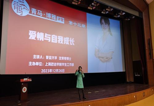 12月26日,“青马·博雅”讲堂第十三期在天马讲堂举行,邀请复旦大学社会发展与公共政策学院沈奕斐博士带来主题为“爱情与自我成长”的讲座。讲座由学生工作部副部长徐丽红主持。