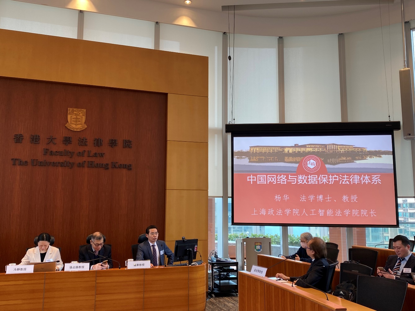 此次论坛共分为9个议题,分别是AI的规范体系、AI与金融纠纷、AI与数据跨境传输、AI与金融、银行和保险、AI与刑法、AI与虚拟货币、AI与土地法、AI与企业及法律服务、AI与海事。我校人工智能法学院杨华教授和吴惟予博士在论坛上分别作了“中国网络与数据保护法律体系”和“海上自主水面船舶适航风险的法律治理之道”的报告。
