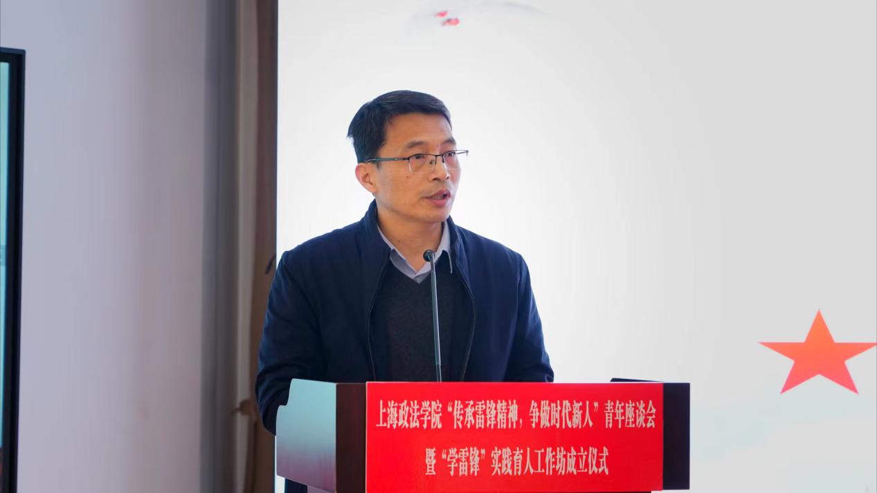 3月12日下午,我校在成德楼举行“传承雷锋精神,争做时代新人”青年座谈会暨“学雷锋”实践育人工作坊成立仪式。校党委副书记、副校长高志刚,原南京军区某部大校政委、《雷锋》杂志社首席记者窦芒,学雷锋志愿服务全国“四个100”最美志愿者、上海健康医学院退休教师傅向东,青浦、黄浦两区青年志愿者工作有关负责人,学校宣传部、学工部、合作发展处有关负责人以及各学院相关教师、青年志愿者代表出席座谈会。