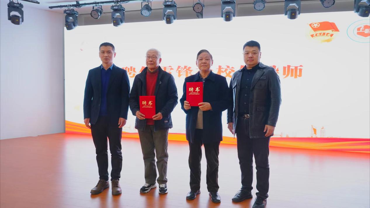 合作发展处处长、党委宣传部副部长陈校,学生工作部、人民武装部部长丁永建代表学校向窦芒、傅向东颁发雷锋社校外导师聘书。