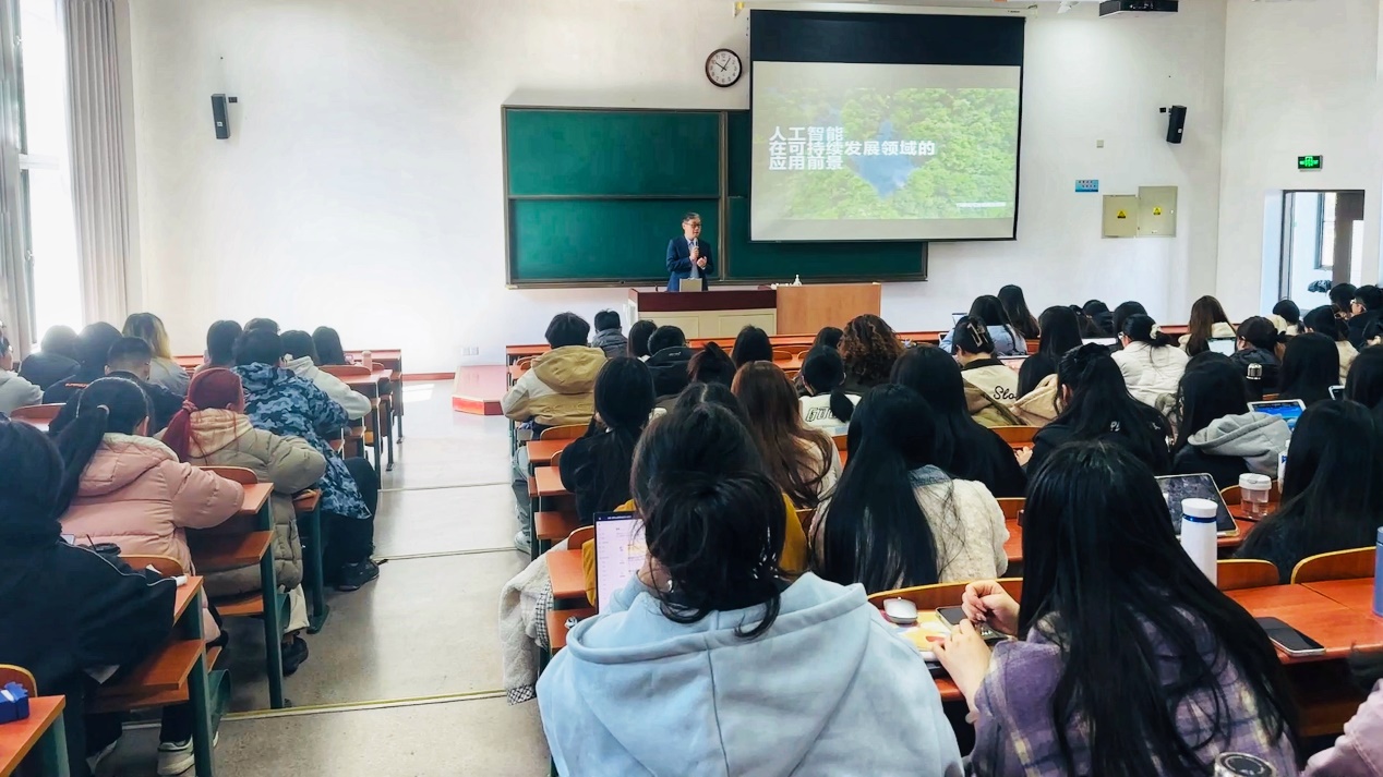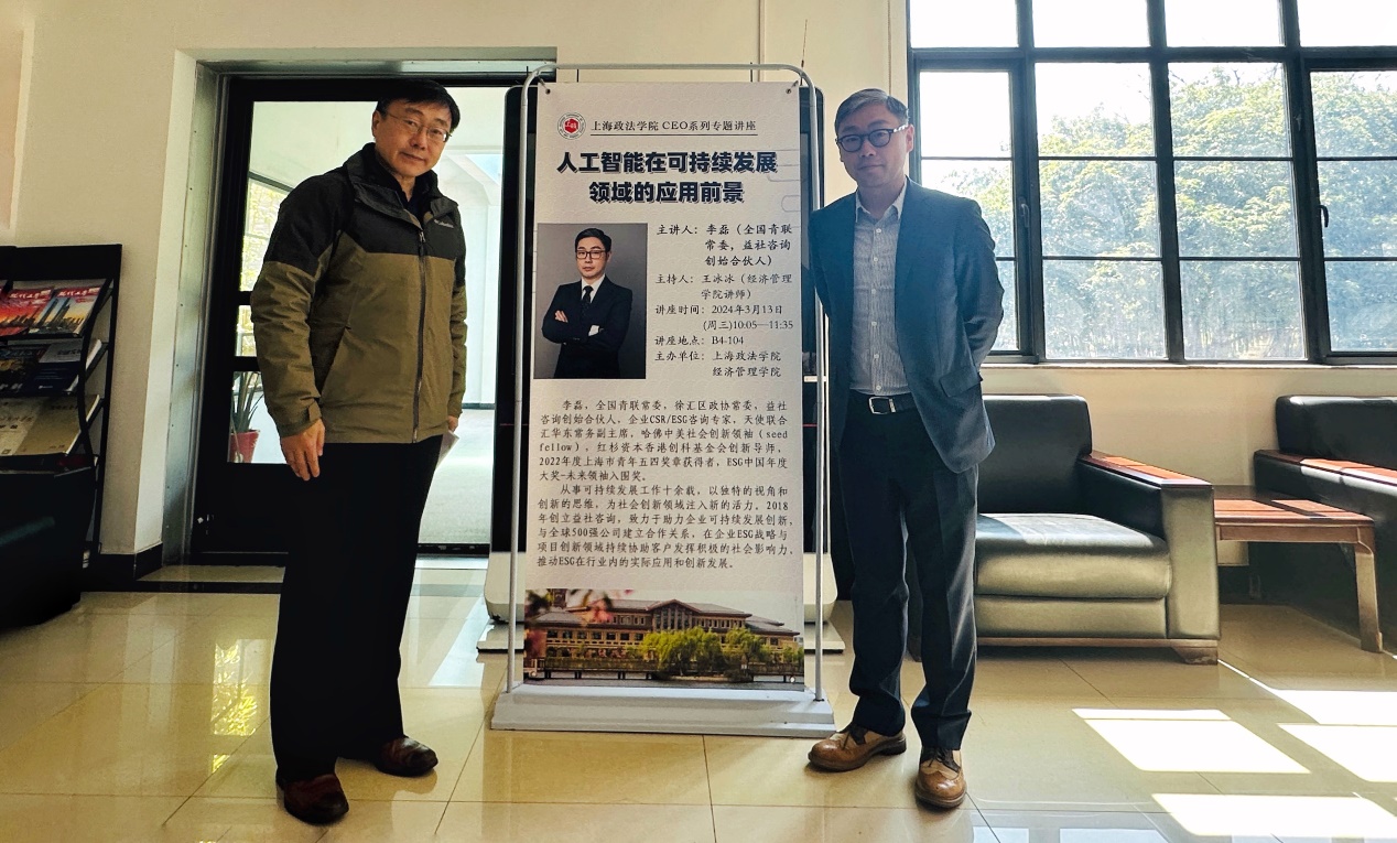 3月13日,知名ESG咨询专家、全国青联常委、徐汇区政协常委、益社咨询联合创始人李磊先生应邀在经管学院特色课程CEO系列专题讲座上作题为《人工智能在可持续发展领域的应用前景》的学术报告。来自不同学院的一百五十余名学生聆听了本次讲座。讲座由经济管理学院讲师王冰冰主持。