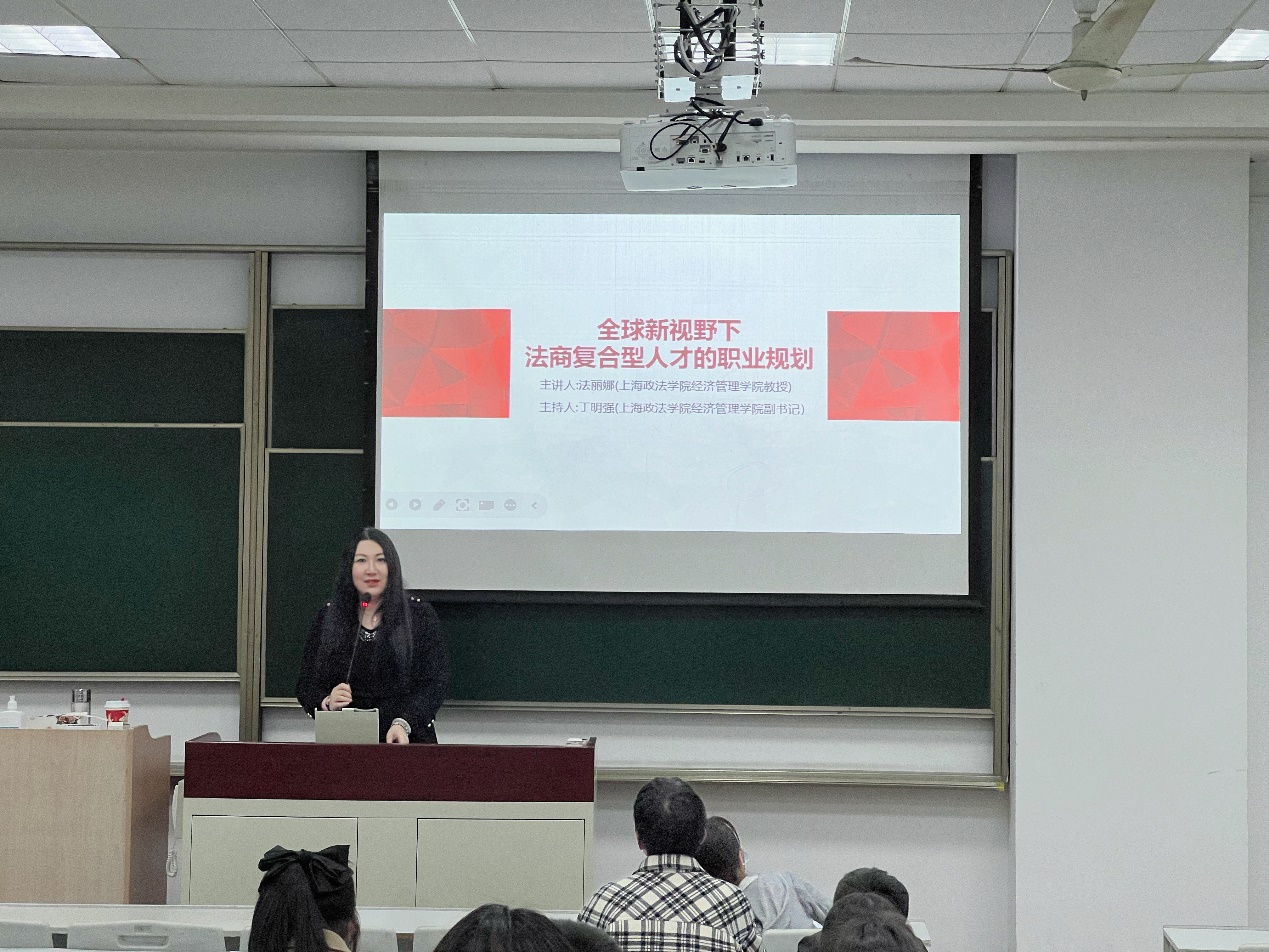 3月20日晚,新利18官方客服“名师讲坛”系列讲座第47讲“全球新视野下法商复合型人才的职业规划”在庸夫楼举办。本次讲座由经济管理学院法丽娜教授主讲,经济管理学院党委副书记丁明强主持,来自不同学院的百余名学生聆听了讲座。
