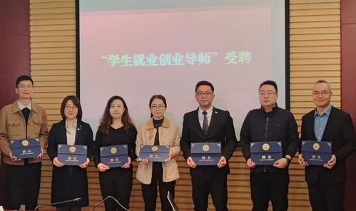 会上,教务处副处长陈风光、学工部副部长柯心为“学生就业创业导师”颁发聘书。