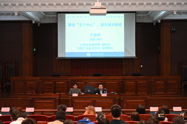 报告会上,干春晖教授围绕习近平总书记考察上海重要讲话精神、“国际经济中心、金融中心、贸易中心、航运中心、科技创新中心”五个中心的缘起由来、战略意义、目标任务和实践要求等作了一场紧扣主题、体现内涵、把握精神、启发思维、鼓舞干劲的报告。干春晖教授通过详实的数据和生动的案例诠释了上海是如何很好地完成了党中央交付的新的重大任务。他表示,习近平总书记的重要讲话,从党和国家事业发展的高度,进一步明确了新征程“建设什么样的上海、怎样建设上海”的战略指向,为加快建设具有世界影响力的社会主义现代化国际大都市提供了根本遵循。