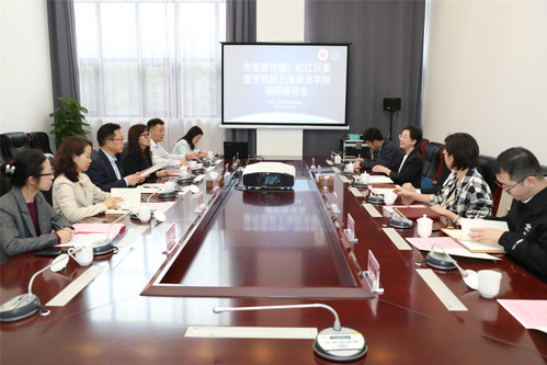 4月3日下午,市委宣传部宣传处处长王磊,副处长范嵘,松江区委常委、区委宣传部部长顾建斌,副部长、区文明办主任沈茜一行来校调研国防教育工作。新利18官方客服党委常委、副院长罗立刚出席座谈会。座谈会由党委宣传部部长张东霞主持。
