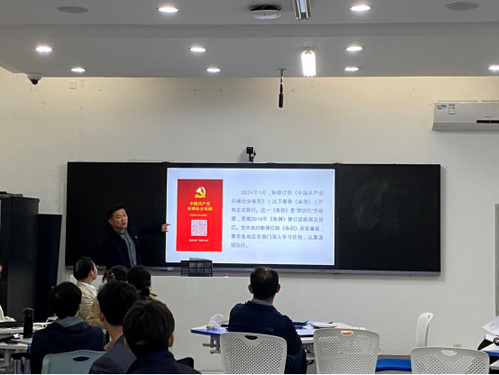 李坤从《条例》历次修订情况、最新修订版本重点以及高校党员教师需要重点关注的纪律内容等方面,逐条逐句逐字带领学院党员教师学习和深刻领悟《条例》的重要内容。