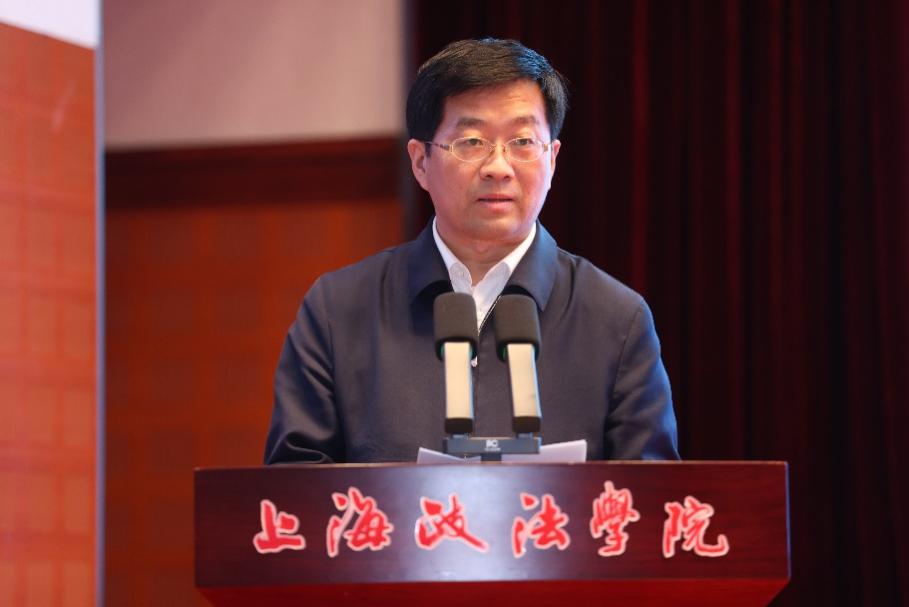 校党委副书记、纪委书记、监察专员潘牧天,上海市司法局党委委员、副局长刘言浩,上海市高级人民法院政治部副主任、二级巡视员卫建萍,上海市人民检察院政治部教育处处长梅泽杰分别致辞。论坛开幕式由校党委副书记、副校长高志刚主持。