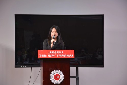 第二届法学经典著作阅读大赛二等奖获得者李铭钰同学进行交流发言,表达了阅读是一种心灵的修炼,阅读大赛给予参赛选手与自我交流、同世界共振的机会。