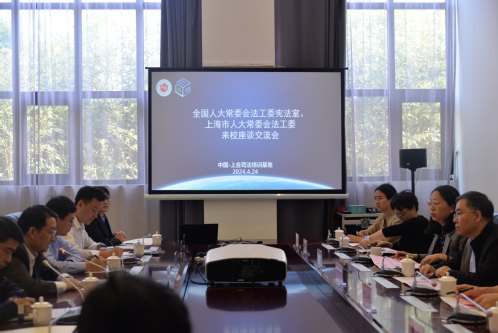 4月24日下午,全国人大常委会法工委宪法室主任雷建斌、副主任刘玉涛,上海市人大常委会法工委主任阎锐、办公室副主任顾晓卿一行到访我校中国-上合司法培训基地。学校党委书记葛卫华出席座谈会。