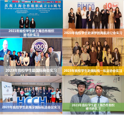 开展涉外法治人才实践能力培养。积极发挥政法院校优势,加强涉外法治人才实践能力培养,选送优秀在校学生赴国际组织实习。2018年以来,累计77名学生入选“上海市高校学生赴国际组织实习项目”,赴上海合作组织、国际统一私法协会、海牙国际私法会议等国际组织开展实习,学校成为上海地区向国际组织法律人才输送最多的高校,涌现出一批在国际商会、新加坡国际仲裁中心等国际组织任职的优秀毕业生。学校还连续14年主办Moot Shanghai国际商事模拟仲裁庭竞赛,不断推动应用型涉外仲裁实务人才的培养,为全世界的法律学子搭建提升商事争议解决能力和建立友谊的平台,为来自世界各地的法律人提供涉外法治人才交流渠道,传播法治精神,共同推进国际法律人才培养迈向新的高峰。