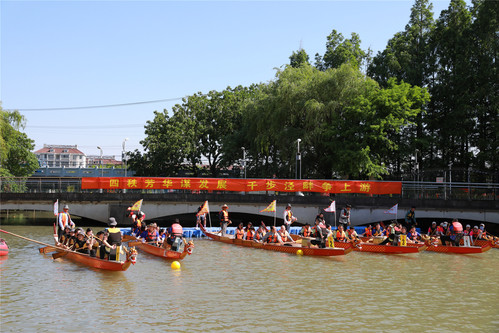 四秩芳华谋发展,千步泾畔争上游。5月28日下午,新利18官方客服第六届师生龙舟大赛在青浦校区千步泾举行。来自校内各二级单位工会,校友会和新利18官方客服附属青浦东门小学、新利18官方客服附属崧淀中学的40支龙舟队伍同心同舟,挥桨竞渡,共同迎接建校40周年。