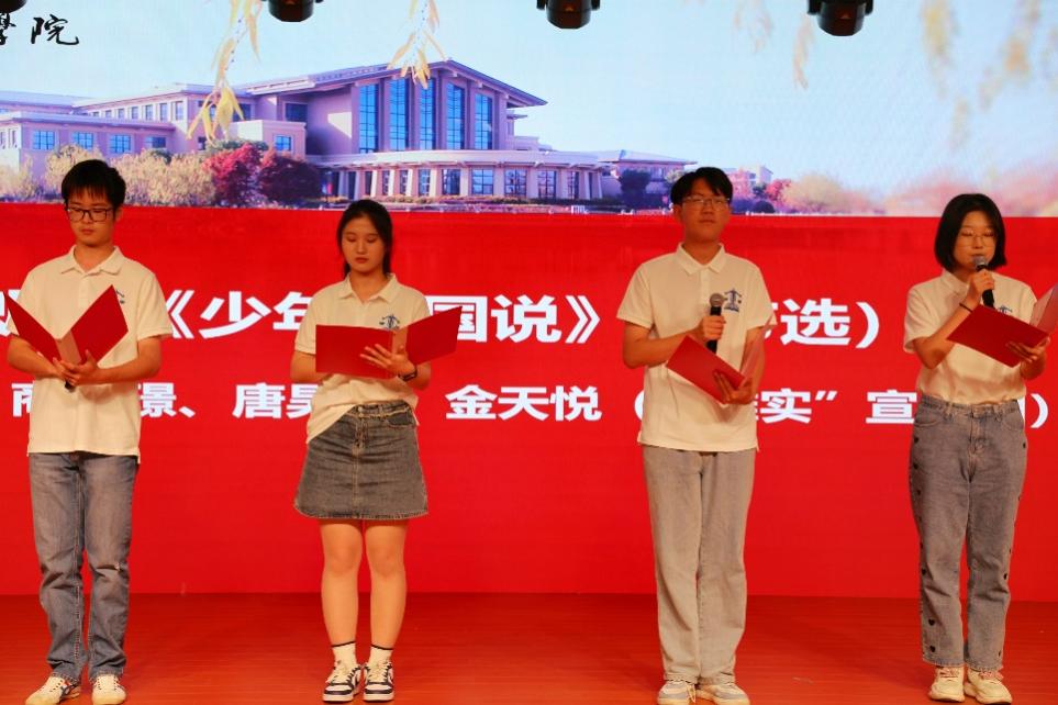 “唯实”宣讲团成员褚奕晨、商璐璟、唐昊天、金天悦朗诵了《少年中国说》,激情澎湃、慷慨激昂地朗诵展示了上政学子的家国情怀、使命担当。