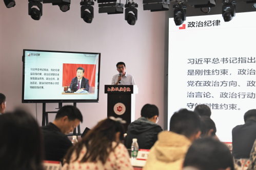 本次党课也是学工部党支部党纪学习教育系列纪律党课的第八讲。学生工作部、校团委全体人员及二级学院党委(党总支)副书记、专职辅导员现场参加了党课学习。