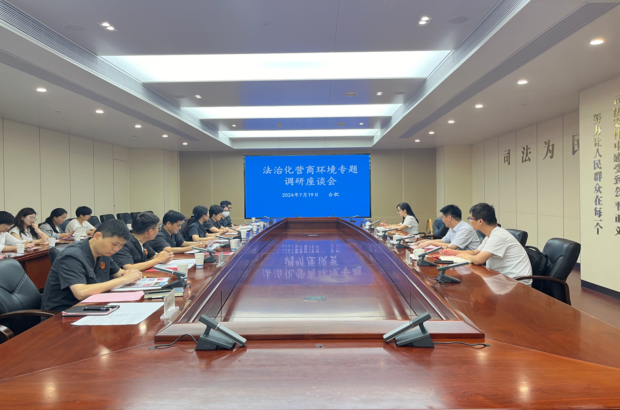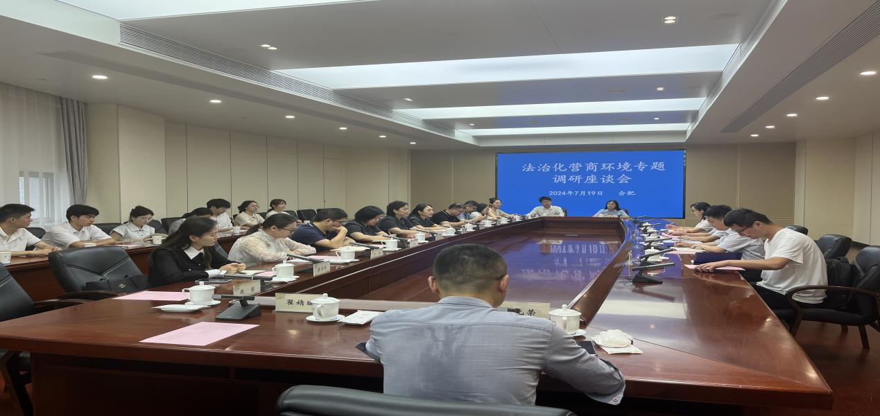 当日下午,调研组一行来到合肥市律师协会座谈。与会人员围绕如何充分发挥律师行业法治保障和法律服务职能,助力打造一流法治化营商环境,以及律师执业权益保障等问题进行了深入交流探讨。
