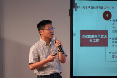 会上,学生工作部副部长柯心、徐丽红、周怡,校团委副书记胡飞宇分别部署了新学期重点工作。