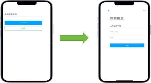 Step2:注册过程中完善单位及个人学工号、姓名等信息