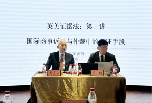 开课仪式结束后,杨良宜、贡航主讲“英美证据法”实务课程第一讲——“国际商事诉讼与仲裁中的取证手段”。主讲人强调学习证据法等国际商事游戏规则的重要性,勉励同学们坚持学习、终身学习、不断进取。主讲人结合典型案例和各自在仲裁实践中的实务经验,介绍了不同的证据类型,重点讲解了在国际诉讼与仲裁中的主要取证手段,以及不同取证手段的要件、特点和利弊。