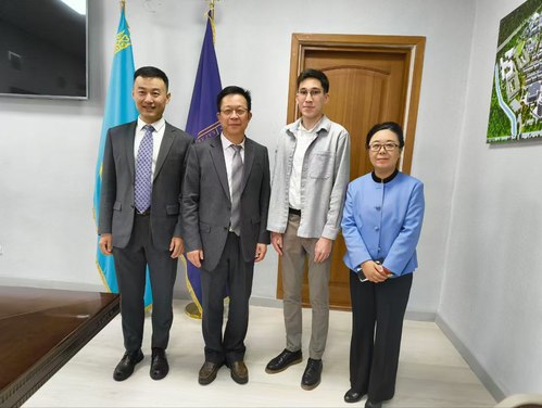 在哈萨克斯坦阿里·法拉比国立大学,第一副校长杜伊森诺夫教授热情接待了我校代表团。杜伊森诺夫高度评价了两校之间已有的合作成果,介绍了阿里·法拉比国立大学的国际学术地位、学科分布、师资力量、科学研究等,并期待未来能继续拓展合作领域,深化合作项目。