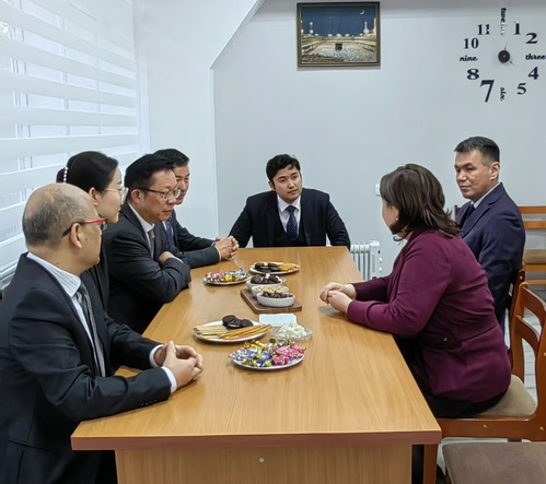 我校代表团与中国—上合司法培训基地境外研修中心负责人、河南大学—吉尔吉斯民族大学丝绸之路学院院长苏白•阿那别克教授进行了会面。苏白教授汇报了研修中心近年的工作情况及后续的工作计划。