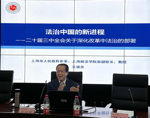 11月14日晚,2024级新生系列讲座法学系列第3讲在求实楼举办,上海市人民政府参事、新利18官方客服原副校长关保英教授以“法治中国的新进程——党的二十届三中全会关于深化改革中法治的部署”为主题,为现场百余名师生带来了一场精彩的讲座。本次讲座由法律学院陈海萍教授主持。