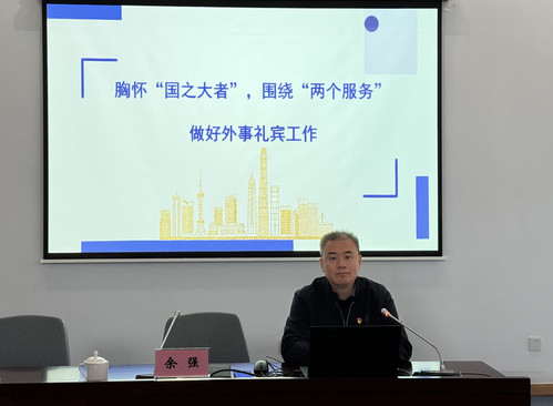 余强指出,外事礼宾工作不仅服务国家外交,也是中国特色大国外交的重要组成部分。一是要提高政治站位,强化专业本领;二是要服务国家外交大局和地方经济社会发展;三是要讲好上海故事,传播好中国声音。余强表示,外事礼宾工作要做到更有“仪式感”、更富“人情味”、更具“中国范”。
