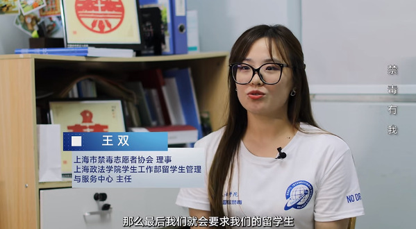 节目中,上海市禁毒志愿者协会理事、我校学生工作部留学生管理服务中心主任王双老师说,“上政禁毒模式”的特色之一就是吸纳了多名国际禁毒志愿者。留学生管理服务中心将禁毒主题与各类非遗剪纸,歌曲改编等创新形式相融合,积极动员国际学生,切实发挥中外青年力量,共同为校园禁毒志愿服务贡献力量。