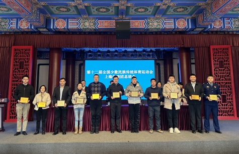 2025年1月9日上午,第十二届全国少数民族传统体育运动会上海代表团总结会在上海体育大学杨浦校区举行。在第十二届全国少数民族传统体育运动会上,上海代表团获得优异成绩。我校法律学院学子李超、刑事司法学院学子拜尔娜·穆合塔尔荣获第十二届全国少数民族传统体育运动会板鞋竞速项目道德风尚奖。大会为表彰学校在此次运动会上做出的积极贡献,授予学校优秀组织奖。
