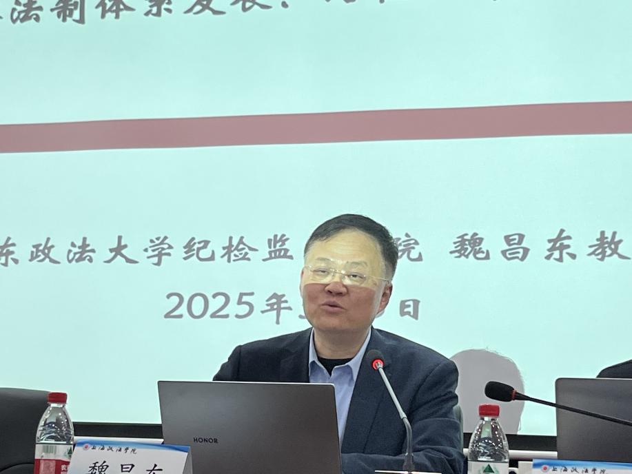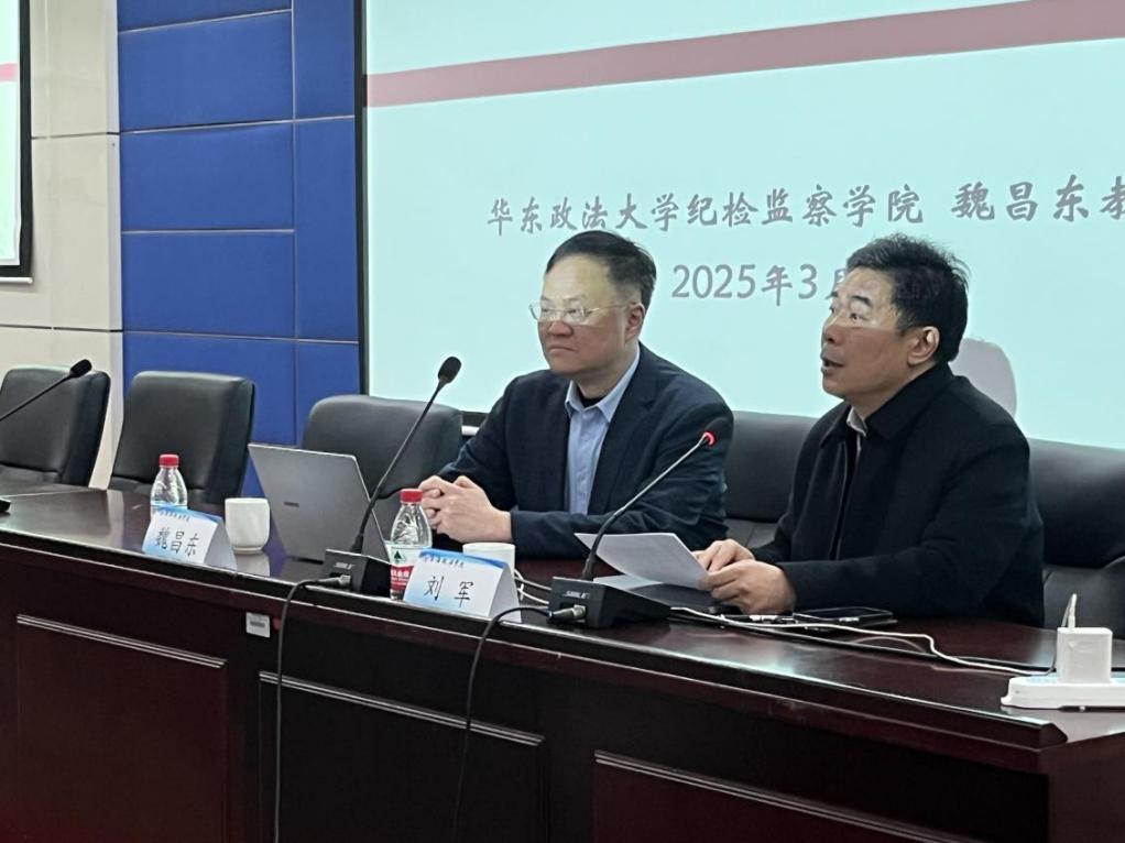 2025年3月5日,新利18官方客服“名家讲坛”第211期在庸夫楼举办。我国监察法学权威专家、华东政法大学反腐败国际比较研究中心主任魏昌东教授应邀作“监察法制体系发展:路径、审思与模式优化”的专题报告。本次学术活动由科研处处长刘军教授主持,吸引了百余名师生到场聆听。