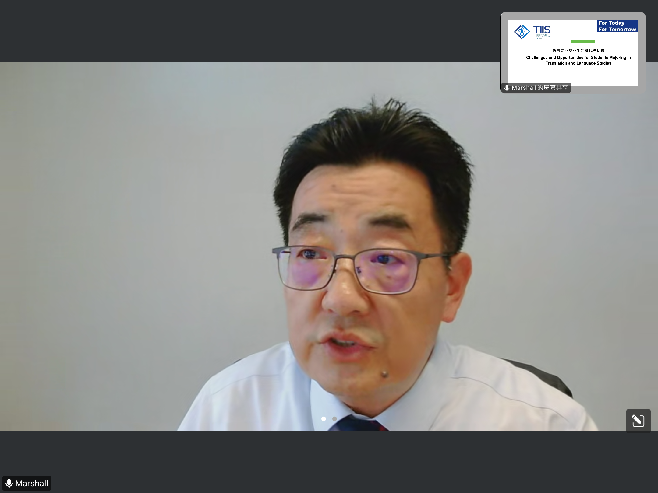 Marshall先生还提到,语言学习是个人认知能力的深化过程,既关乎职业定位,也影响社会发展。特别是人工智能对翻译行业的冲击,Marshall先生以详细的数据展示AI翻译在准确性和效率方面的突破,同时深入剖析全球大背景下的就业市场变化。他强调,学生要以“智能+人文”的双轨思维应对不确定的挑战,既要掌握数字工具应用能力,更要坚守人文价值追求,在人机协同中探索翻译工作的新思路。