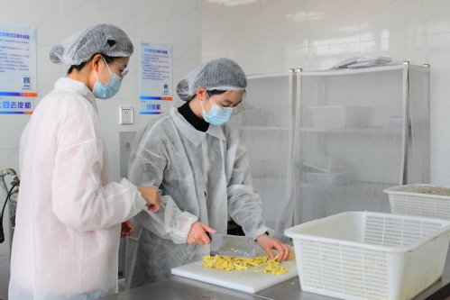 在随后的帮厨体验环节中,学生代表在每组1-2名食堂工作人员的耐心指导下,全过程实际操作蔬菜清洗、切配加工、烹饪制作、打菜包装等工作,同学们对学校餐厅饭菜制作与食品安全有了更为直观的认识,也对辛勤劳动有了更为深层次的感受与理解。
