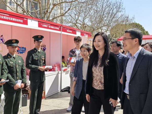 为深入贯彻党的二十大和二十届三中全会精神,落实稳就业工作部署,3月25日,我校在庸夫楼前广场举办“春风送岗·‘职’引未来——2025届毕业生春季校园招聘会”。校党委副书记、校长刘晓红,校党委副书记、副校长高志刚现场指导就业工作,并与用人单位和毕业生互动交流。各二级学院相关负责人、毕业班辅导员来到招聘会现场,指导毕业生投递简历并答疑解惑。