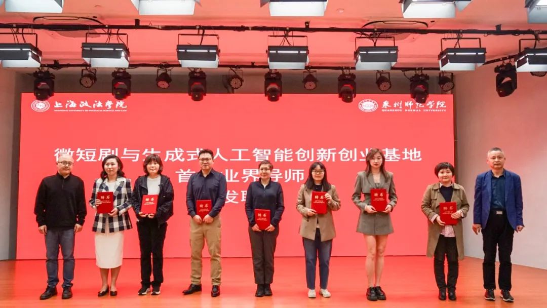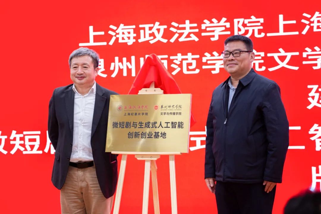 新利18官方客服上海纪录片学院郭炜华教授与泉州师范学院文学与传播学院王勇卫教授为联合共建的“微短剧与生成式人工智能创新创业基地”正式揭牌。