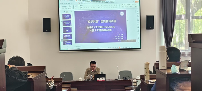 4月29日下午,由学校留学生工作办公室主办的“知华讲堂”首场活动举办。作为学校国际化人才培养的重要平台,该系列讲座旨在构建跨文化交流桥梁,汇聚全球智慧,共探前沿议题。首场讲座以“生成式人工智能DeepSeek与中国人工智能发展战略”为主题,由人工智能法学院黄一帆老师主讲,吸引了逾100名中外学子到场聆听。