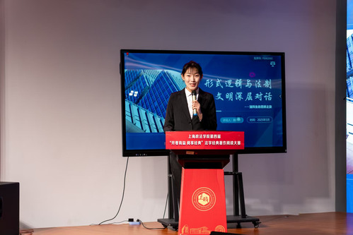 叶卉宣读了获奖名单。经过激烈角逐,蒲妍荣获一等奖,郑一丹、曹靖旋获得二等奖,昂格丽玛、高菡聆、蒋泽宇获得三等奖,韩雨默、蔡沁音、韩雨洁、陈骏洋获得优胜奖。获奖代表曹靖旋分享了参赛心得,表示将继续深耕专业阅读,提升法学素养。