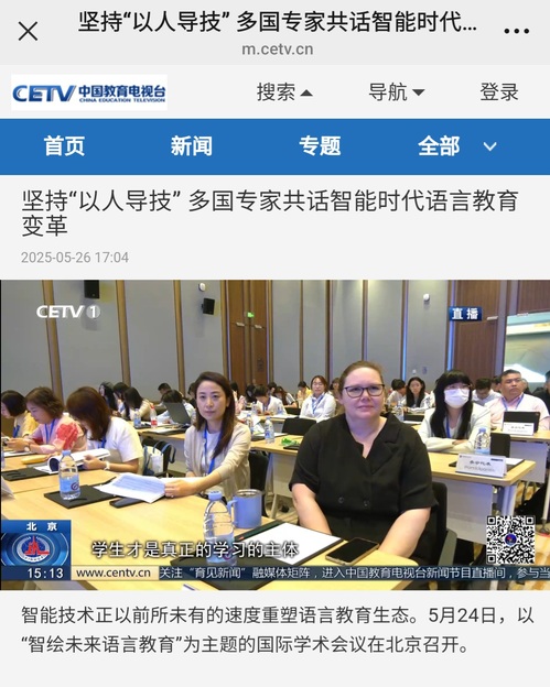 近日,语言文化学院(国际交流学院)教师沈燕赴北京参加了由北京邮电大学人文学院主办的“ICFULL 2025 & GloCALL 2025”国际研讨会。本次融合了“未来语言学习国际会议(ICFULL 2025)”与“计算机辅助语言学习全球及地方会议(GloCALL 2025)”的高水平国际会议,吸引了全球计算机科学、语言学、教育技术及语言教育等跨学科领域的众多顶尖学者、研究人员和实践者汇聚一堂,共同探讨智能时代的语言教育变革与发展。会议盛况受到中国教育电视台关注,并以“坚持‘以人导技’多国专家共话智能时代语言教育变革”为题进行了新闻报道。