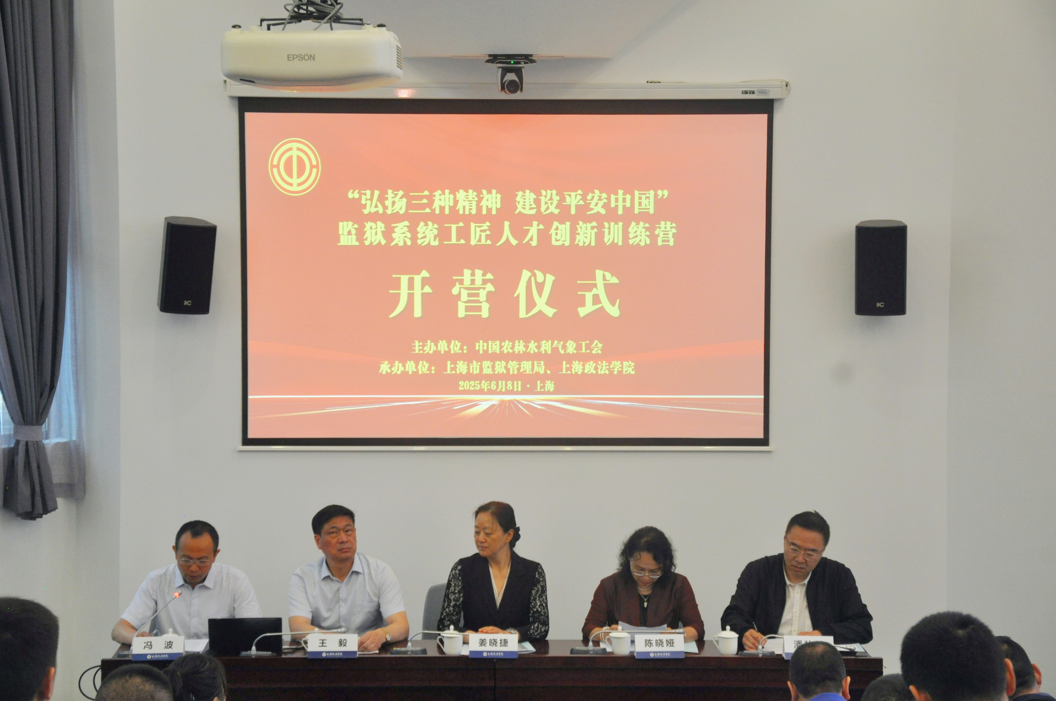6月8日上午,中国农林水利气象工会“弘扬三种精神 建设平安中国”监狱系统工匠人才创新训练营开营仪式在我校举办。中国农林水利气象工会副主席姜晓捷,司法部监狱管理局政治处一级调研员陈晓娅,上海市监狱管理局政治部主任王毅,新利18官方客服党委副书记、纪委书记、监察专员潘牧天出席开班仪式。开班仪式由中国农林水利气象工会林草和监狱工作部长冯波主持。