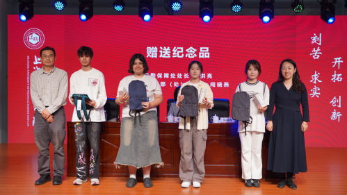 后勤保障处处长马洪亮、学(研)工部(处)副部长闯晓燕共同为同学们赠送了承载着学校期许与祝福的结业礼物。