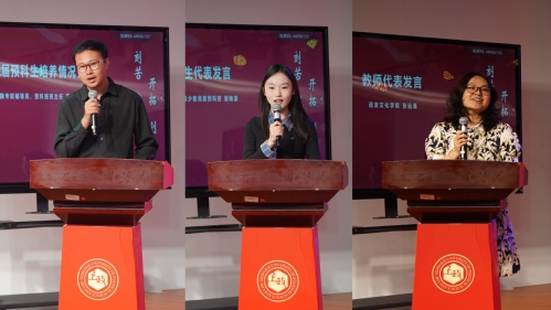 少数民族专职辅导员、预科班班主任苏力旦江・帕塔尔介绍培养情况,回顾了本届预科生在德智体美劳等方面的成长轨迹。学生代表谢婉津以“成长、感恩、承诺”为关键词,分享了预科阶段学习生活感悟。语言文化学院教师张远满代表全体预科班任课教师发言,鼓励同学们永葆学习热情,在本科阶段书写属于自己的精彩篇章,将个人的理想与追求融入到时代的浪潮之中。