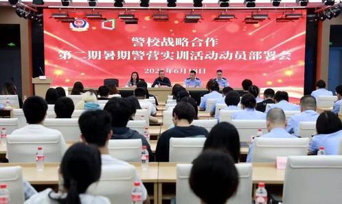 6月18日上午,上海市公安局青浦分局与新利18官方客服纪录片学院联合召开警校战略合作——第二期暑期警营实训活动动员部署会。纪录片学院院长郭炜华、副院长邢虹文及公安青浦分局领导、各实训点位负责人以及79名学院学生等共同参与。