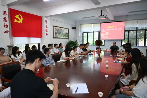 6月27日下午,语言文化学院举办“从战歌到国歌——纪念《义勇军进行曲》诞生90周年”讲座暨大思政建设专题党课。本次讲座由上海市茶叶学会青工委主任、海派博物馆式茶文化会馆——“弄堂问茶”创始人牟健惟主讲,语言文化学院党总支副书记魏洲阳主持。语言文化学院党总支副书记(主持工作)周怡、副院长翁晓玲,以及学院师生代表参与,共同追溯国歌的历史渊源,感受其蕴含的爱国情怀。