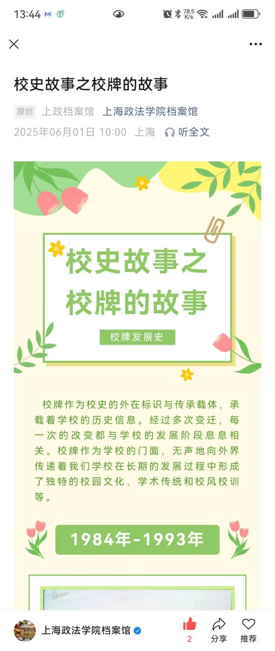 今年6月以来,校史馆围绕国际档案日“档案与民生”主题开展了系列活动,通过“新利18官方客服档案馆”公众号推出“校史记忆”及“校史故事”系列文章,累计获得超3000次点击。