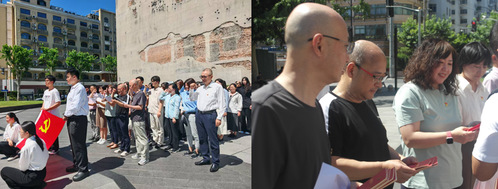 参加活动的教工党员在晋元纪念广场重温入党誓词,并带领2025年新入党党员面向鲜红的党旗庄严宣誓,用铿锵有力的声音表达新时代共产党员的责任与担当。国际法学院(国际仲裁学院)和教学质量督查与评估办公室负责人向新党员发放《中国共产党章程》,希望新党员们能够深刻领会党章的精神实质,将其内化于心、外化于行,在今后的学习和工作中发挥先锋模范作用。
