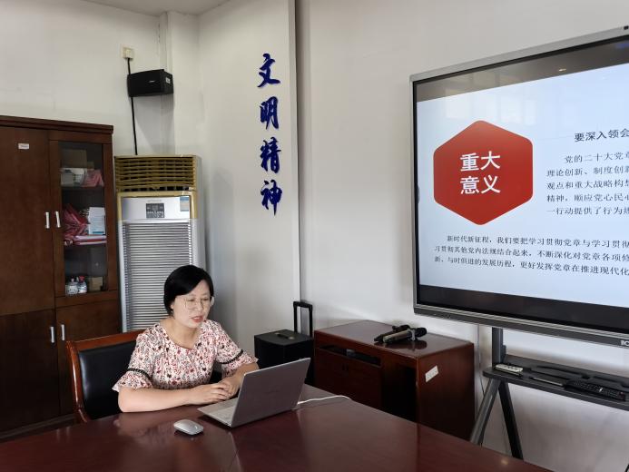 周洁以“学党章,强党性”为题,从深刻认识党章的重要地位和作用、掌握党的二十大党章修改的主要内容和准确把握学习贯彻党章的实践要求三个方面论述了党章兼有的纲领和章程的性质和作用。她指出学生党员要把学习贯彻党章与学习贯彻习近平新时代中国特色社会主义思想结合起来,不断深化对党章各项修改科学内涵和重大意义的认识,准确把握党章守正创新、与时俱进的发展历程,更好发挥党章在推进现代化建设和党的建设中不可替代的作用。