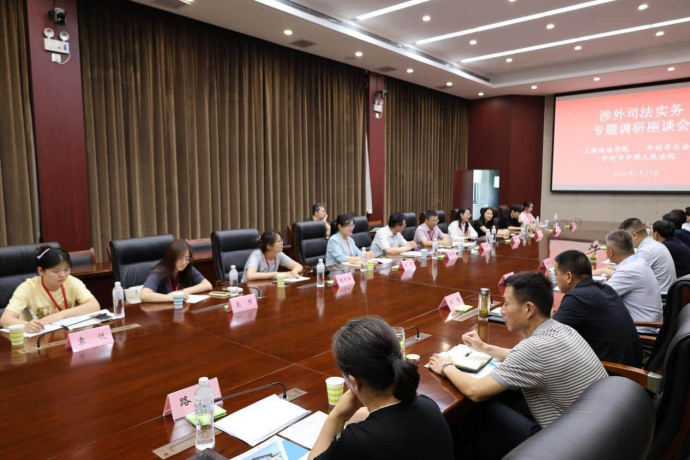 7月17日上午,调研组一行转场抵达古都开封,开启河南第三站的实地调研。开封市中级人民法院党组副书记、副院长赵刚毅,开封市司法局党委委员、副局长,开封仲裁委员会副主任高庆生,开封市中级人民法院党组成员、副院长邓强等,先后详细介绍了开封市在涉外司法领域的工作现状,包括涉外案件面临的法律适用冲突、涉外送达和司法协助困难等实际问题。
