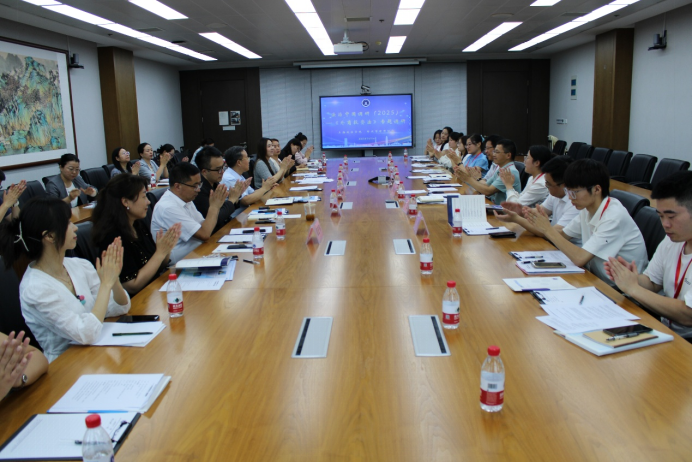 7月15日上午,调研组一行来到郑州市律师协会开展座谈会.郑州市司法局律师工作处处长、市律师行业党委副书记杨雷法,市律师行业党委副书记、市律协会长赵虎林,市律师行业党委委员、市律协秘书长王振洋以及律师代表共同参会。