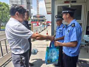 武装保卫部(处)长潘高荣和上海五蕴保安公司总经理苗三原、区域经理张欢欢等为暑假期间奋战值守在校园安保一线,认真履职尽责守护校园安全的各岗位安保值守人员送上了清凉和慰问,保安公司领导详细了解了校园安保值守、岗位安全守护、员工身心健康、应急处突准备等方面的情况,就进一步做好暑假中后期校园安保工作提出了具体措施,学校武装保卫部(处)就加强暑期校门管控、强化校园巡查、落实重点部位管理、做好防台防汛、组织技能训练和推进应急演练等工作提出了要求。
