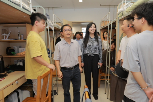 校党委书记葛卫华,校党委副书记、校长刘晓红,校领导潘牧天、高志刚、郑少华、毛军权,各相关职能部门负责同志一行来到新生报到相关场所,亲切看望2025级本科新生及家长,向参与迎新的师生员工表示慰问。校领导一行详细了解了新生报到、住宿安排、入学手续、后勤保障等现场情况,并仔细询问了大学生医疗保险、绿色通道、空调租赁等情况,对迎新工作重点环节作出指导,叮嘱各部门一定要想学生所想、急学生所急,高质量、高效率做好各项服务工作,让学生安心,让家长放心。